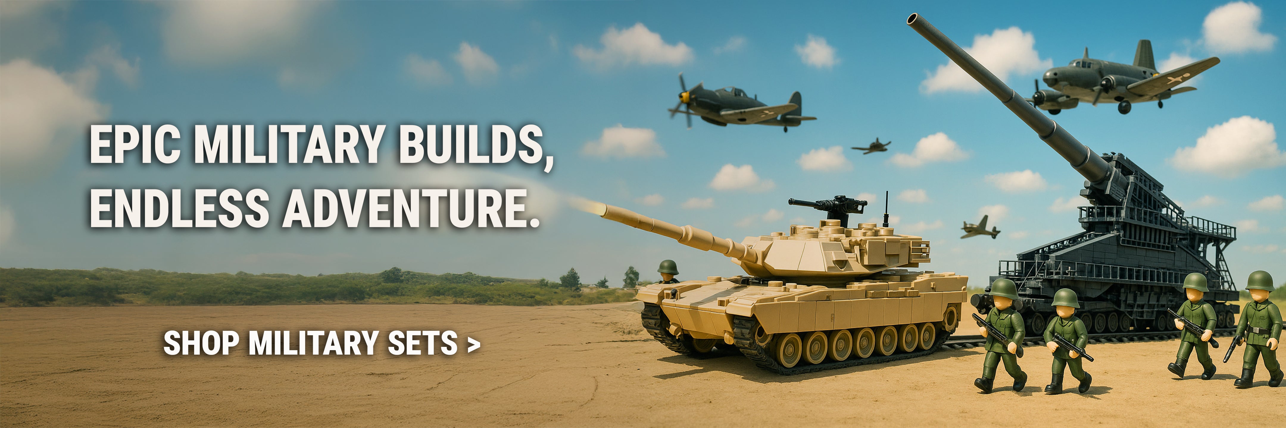 At General Jim’s, every set is an adventure. Build battles with detailed military machines, design bustling city streets, and create your own world brick by brick. With authentic detail, durable quality, and endless play value, our sets inspire builders of all ages to imagine, collect, and conquer.