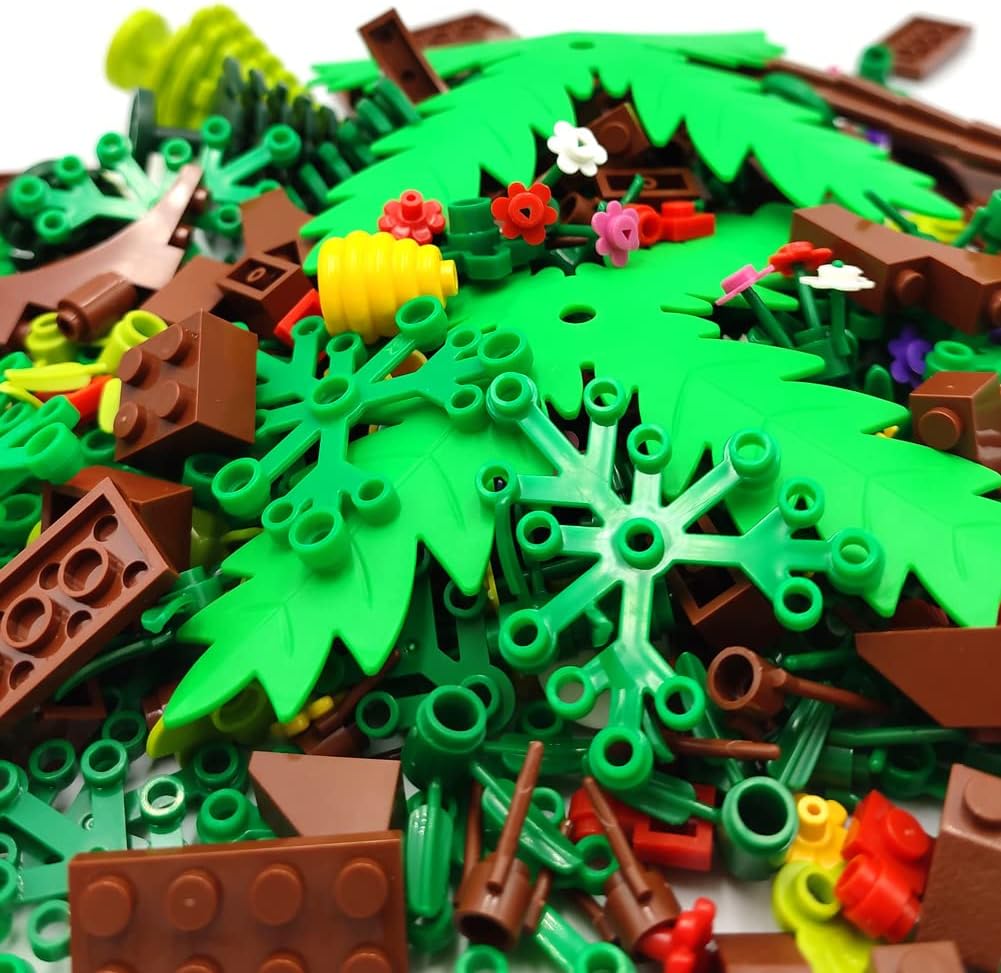 - Includes trees, bushes, flowers, leaves, plants, animals, and baseplate for building a detailed park scene