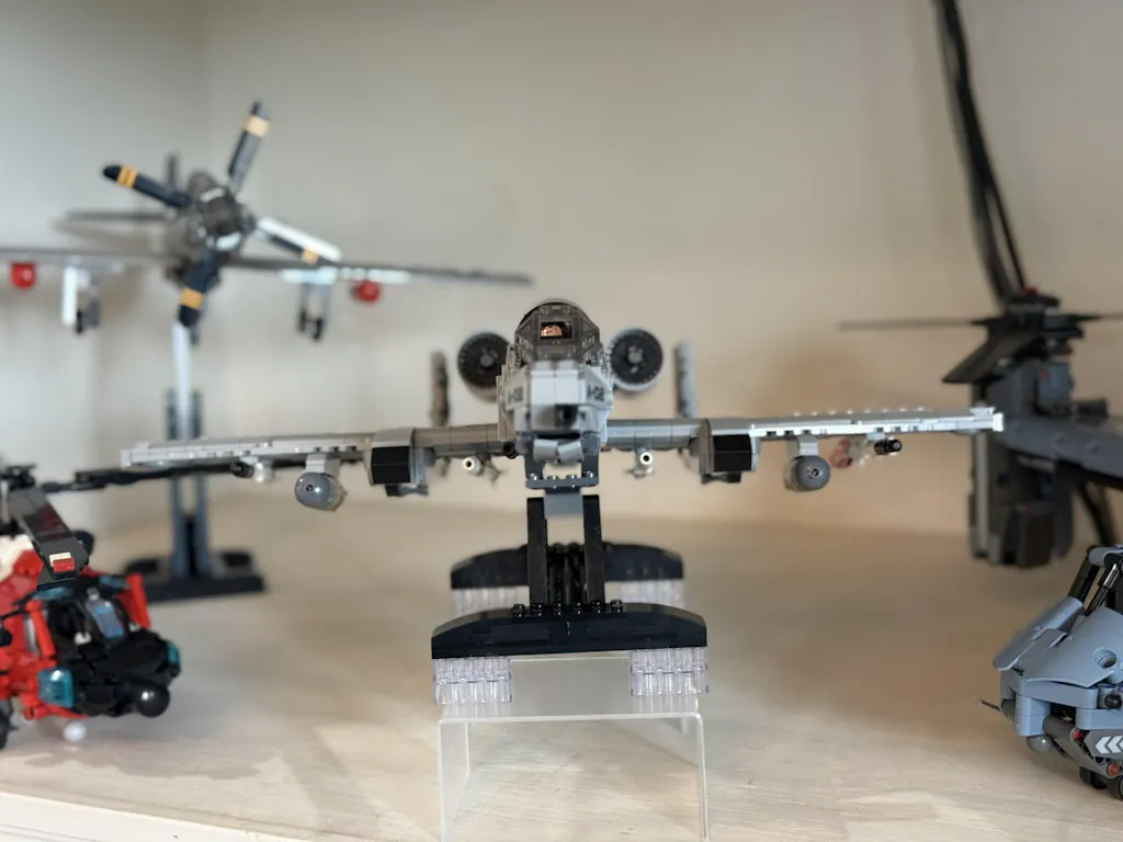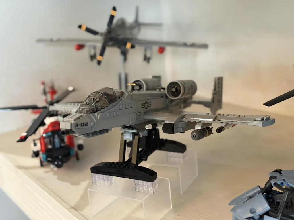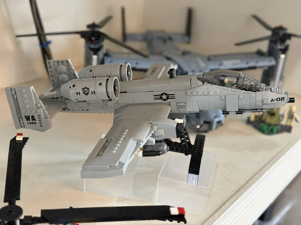 The fighter jet details include retractable landing gear, rotatable ailerons, opening bomb bay doors, moving wing flaps and an opening cockpit that includes a pilot figure. The set also includes a full ground artillery station and a tactical squad of four figures for immersive roleplay. From its rugged frame to its unmistakable silhouette, this set delivers a detailed, no-nonsense build worthy of one of America’s most trusted attack aircraft.