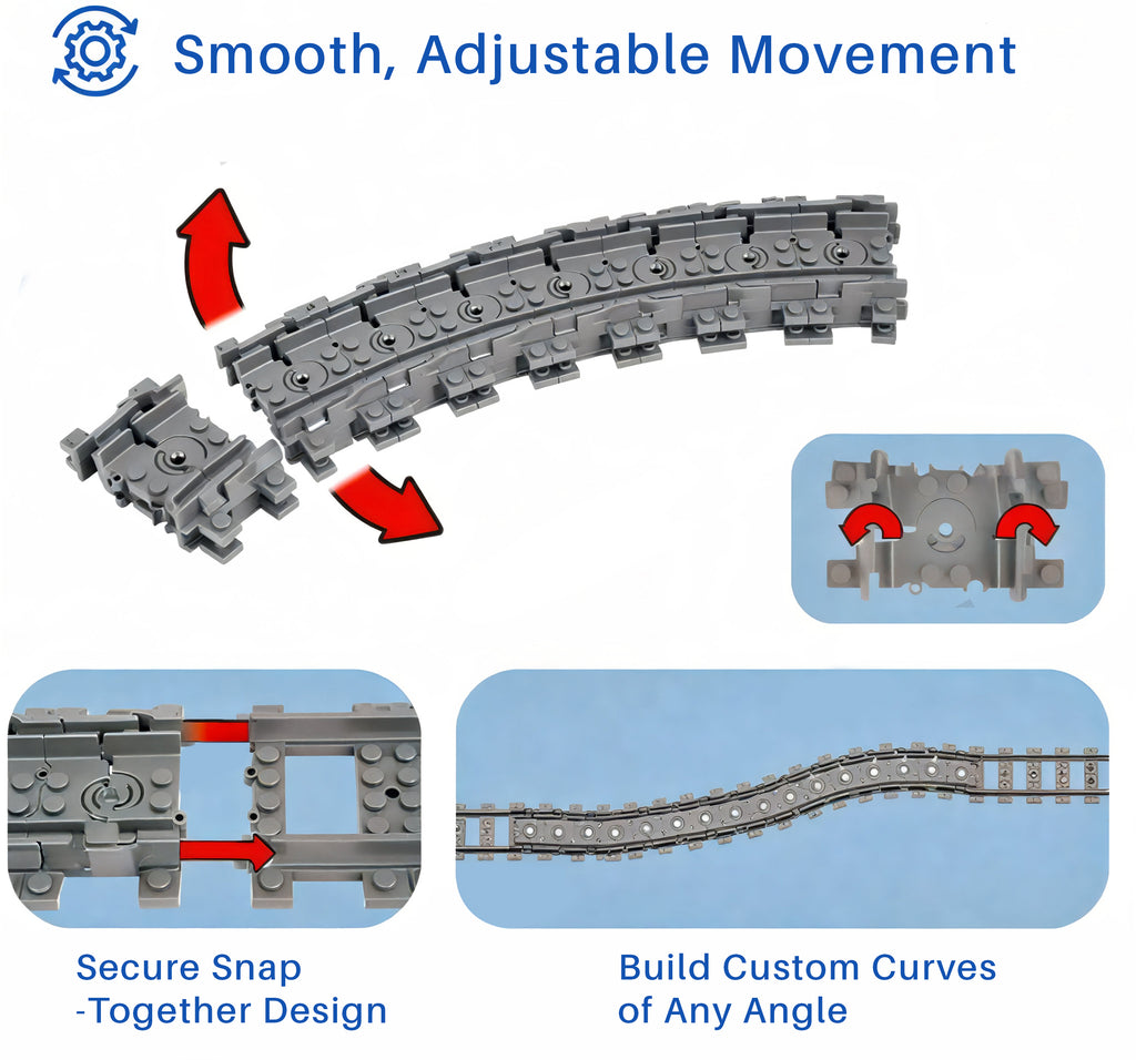 Expand and customize your railway system with this 24-piece track expansion pack. Featuring 8 straight tracks and 16 flexible tracks, this set allows you to create curves, bends, and layouts that bring your train builds to life. Whether you’re building a city rail system or designing unique track configurations, these tracks are designed to keep the creativity rolling.