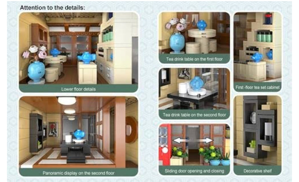 General Jim’s Japanese Tea Shop Building Block Set – 1200 Pieces with Light Kit