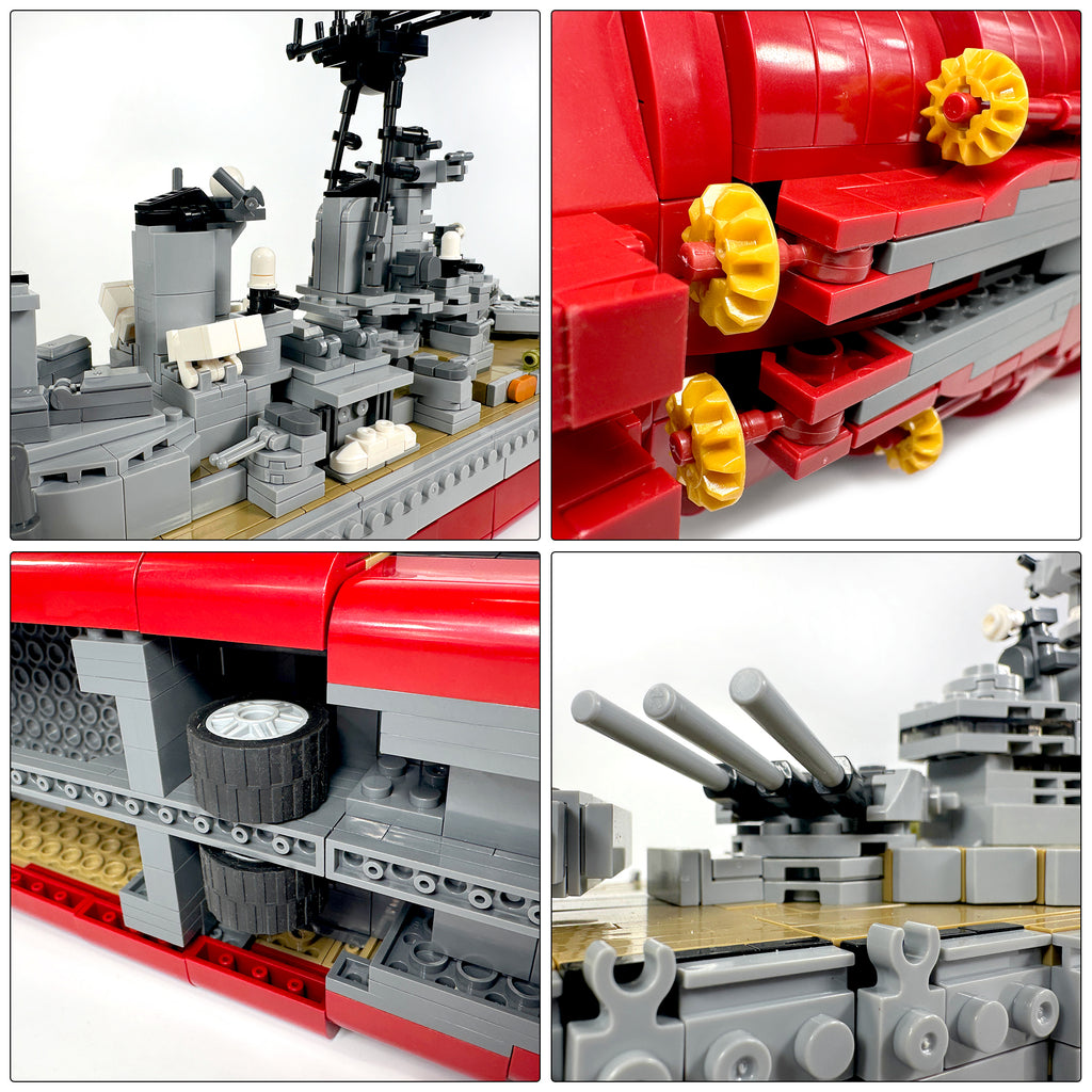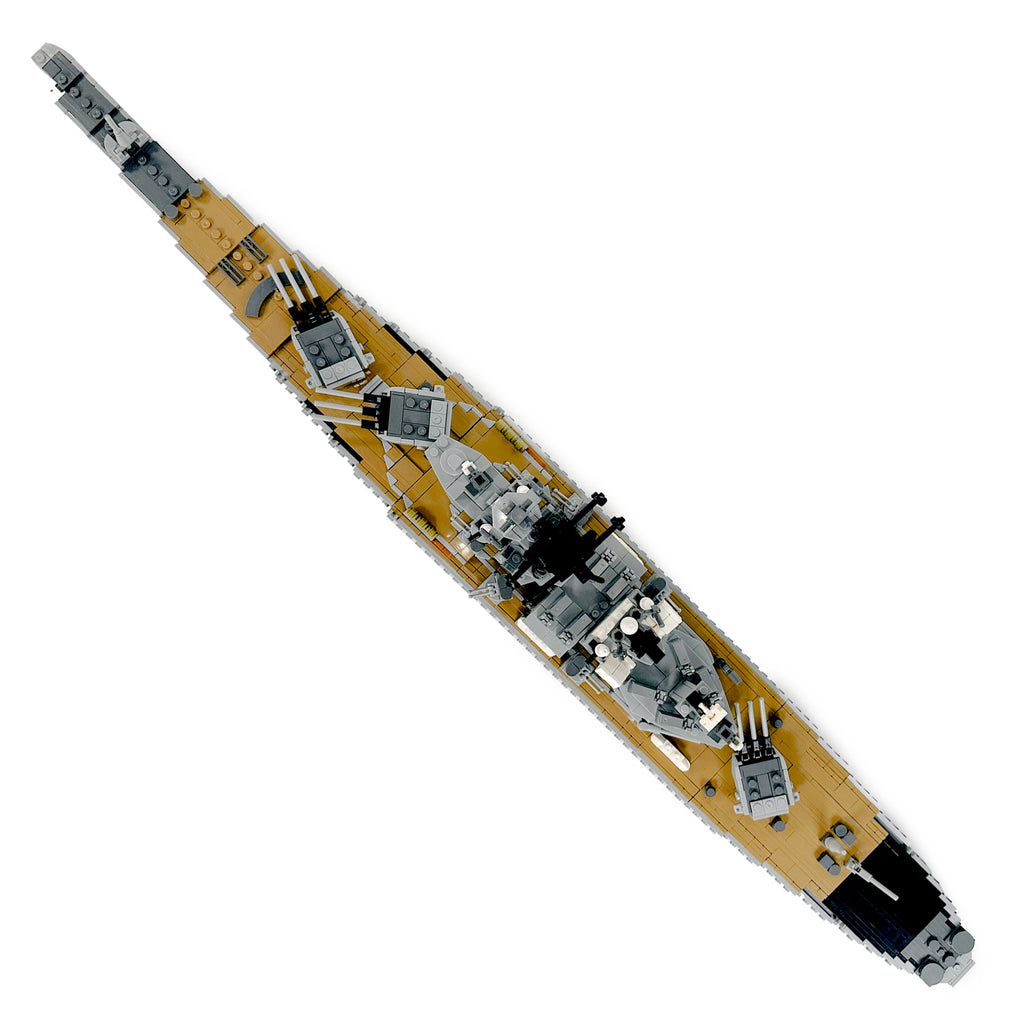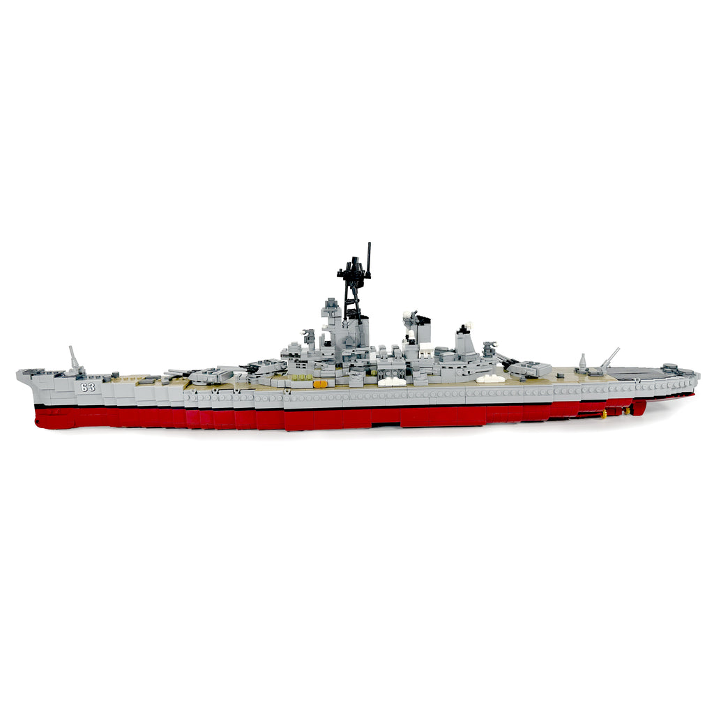 This set brings the grandeur and might of the "Mighty Mo" to life. Carefully crafted building blocks replicate the ship’s authentic features, from its towering superstructure to its powerful deck weaponry. Built at approximately 1:325 scale, the finished model measures around 33 inches long, 4 inches wide, and 9.5 inches tall, making it a striking centerpiece for any military or history-themed collection.