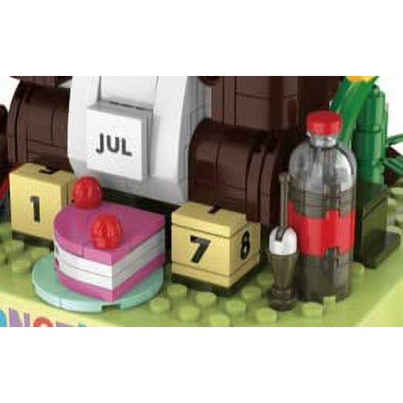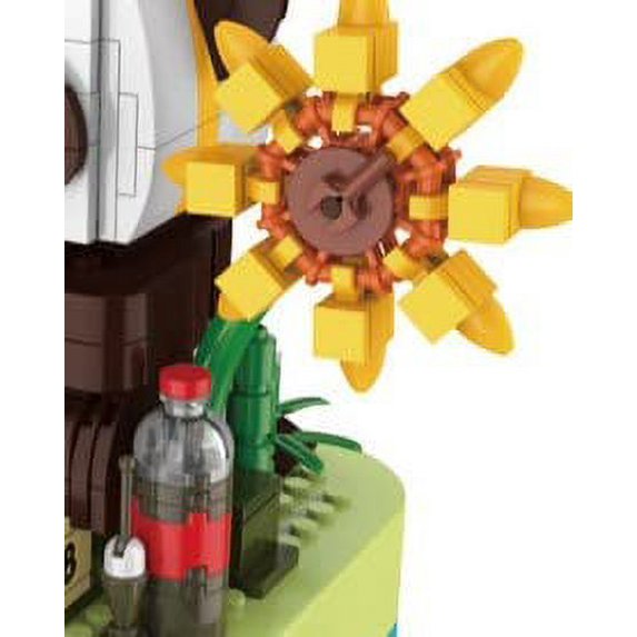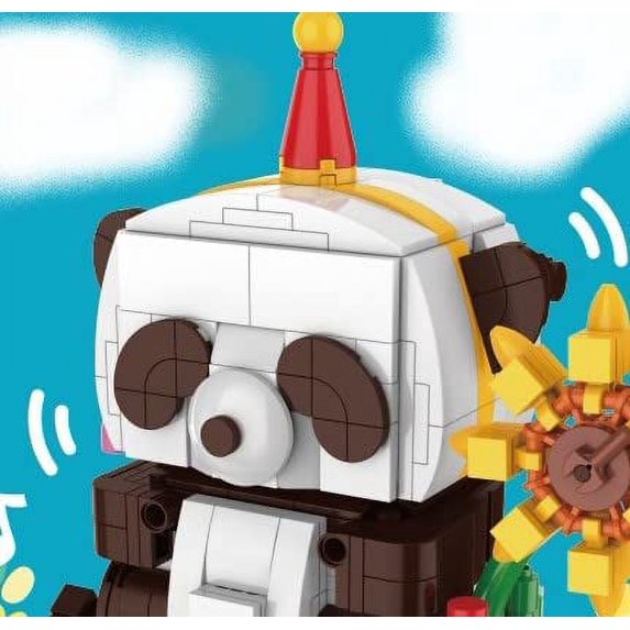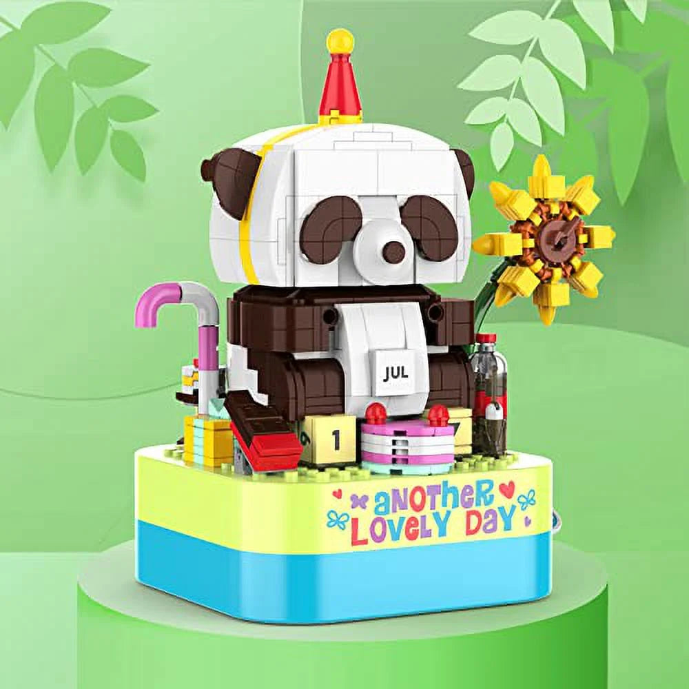 With 525 building pieces, this set builds into a panda sitting on a colorful base decorated with fun details like a birthday cake slice, soda bottle, sunflower spinner, and a calendar feature with interchangeable month and date blocks. Once built, simply wind it up to enjoy the music as the panda rocks its head side-to-side, creating a cheerful display piece for any desk or shelf.
