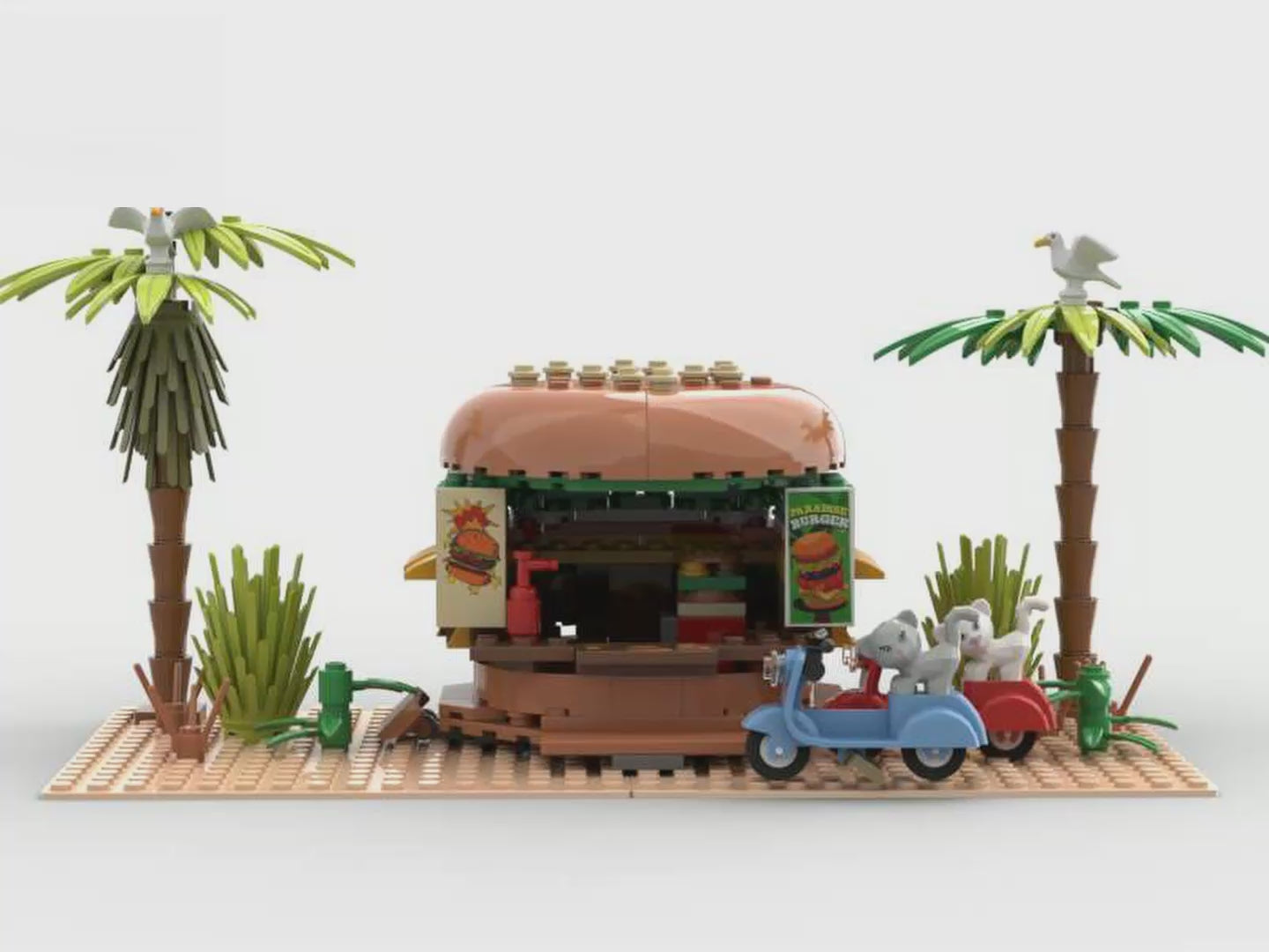 Build Your Own Burger Oasis! Step into a tropical paradise with General Jim’s Paradise Burger—a vibrant, modular set that brings life, charm, and palm-lined flair to your city builds. Perfect for kids, collectors, and creative builders alike, this set combines a colorful burger stand with playful accessories like greenery, palm trees, and animal figures for an immersive building experience. With detailed building instructions and compatibility with all major brick brands, it blends seamlessly into your city streets, markets, or food districts—whether as a standalone build or part of a larger display.