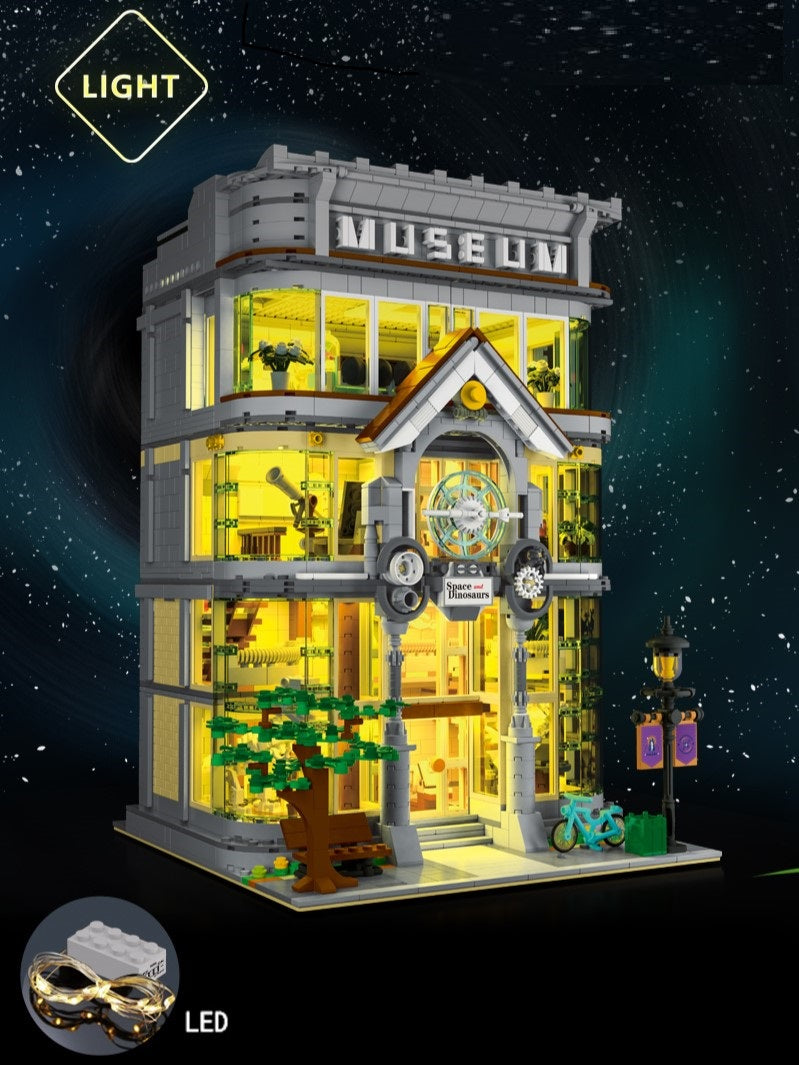 From towering dinosaur skeletons to space exploration displays, each level offers a new adventure. The included LED light kit illuminates the exhibits for realistic day-to-night play, while the intricate architectural details make this a stunning display piece for any collection.