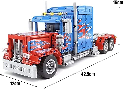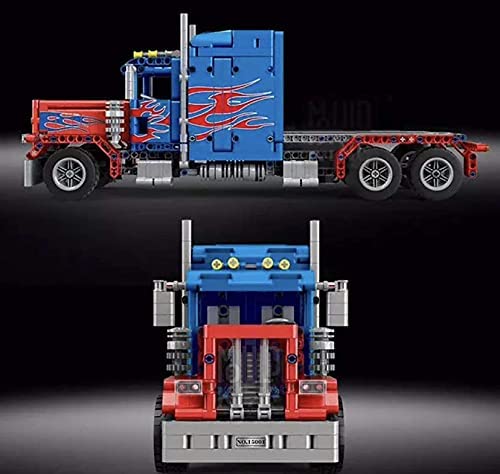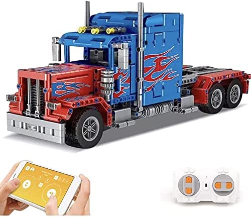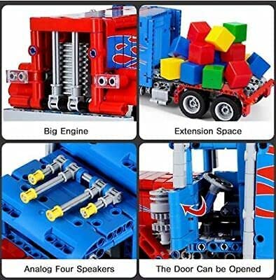 Bring power and precision to your brick collection with the RC Semi Truck Building Block Set. This 839-piece set combines the creativity of building with the excitement of remote control driving. Designed in a bold red and blue flame-liveried style, the semi truck features realistic design elements such as a large engine block, opening doors, detailed exhaust stacks, analog four-speaker elements, and an extendable bed for hauling cargo.