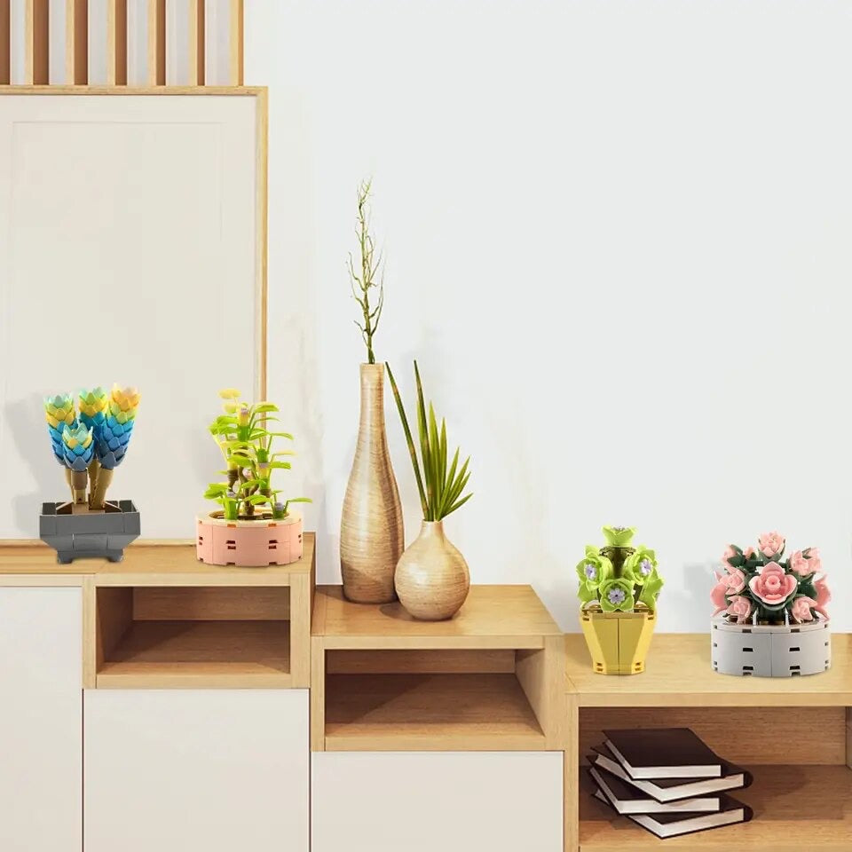 Perfect for budding gardeners, plant lovers, and building block enthusiasts, this set provides a relaxing and rewarding building experience. The compact sizes make them ideal for display on desks, bookshelves, or windowsills.