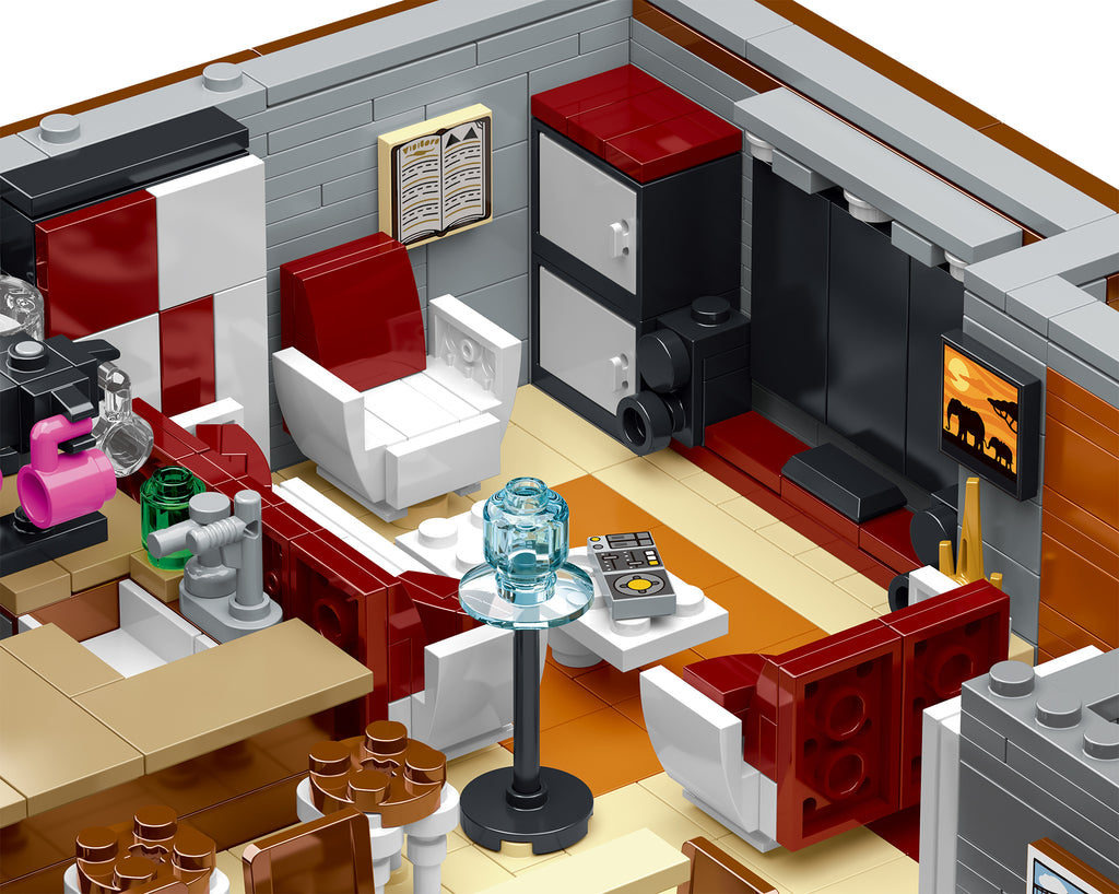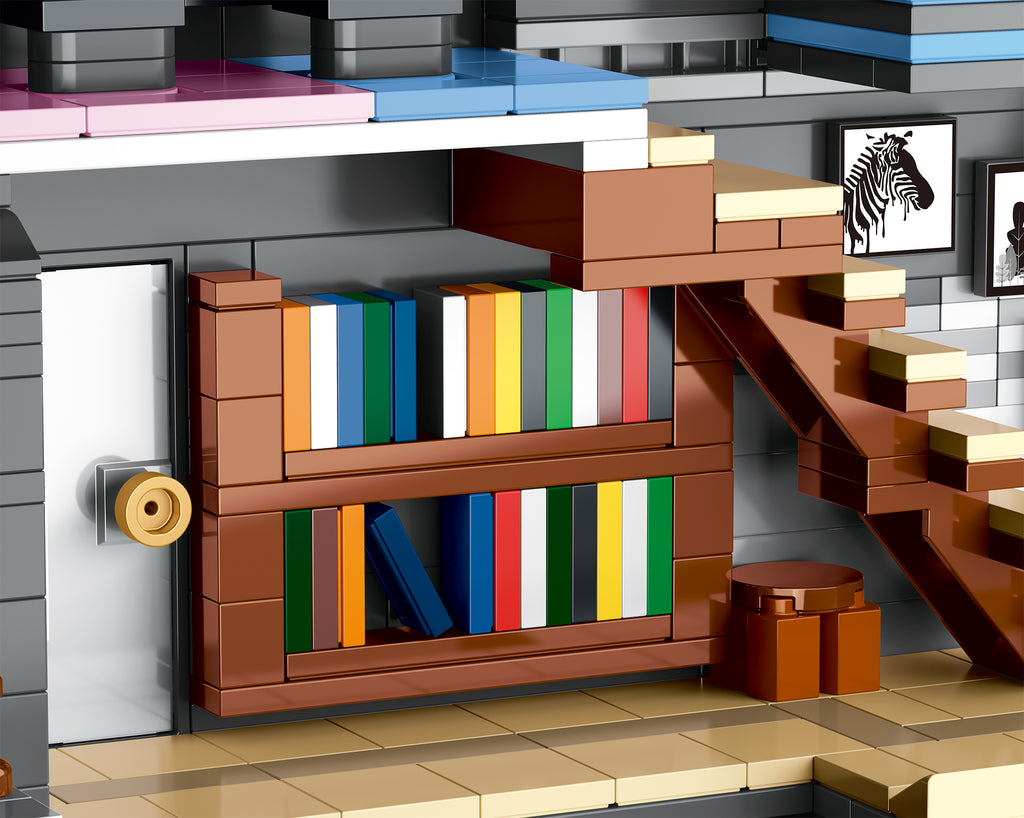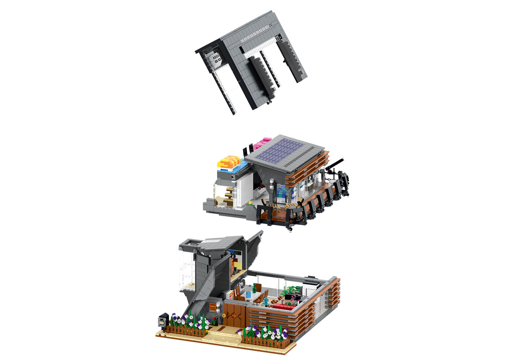 Crafted from 3,832 premium-quality pieces, The Lambda House combines luxury and functionality across multiple levels. From the sleek kitchen and open-plan dining area to the vibrant bedrooms, rooftop patio, and home office, every space is loaded with expressive design and realistic furniture. The removable roof and sectional floors allow easy access and display versatility.