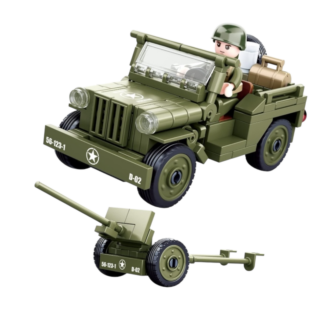 325 Total Pieces – Build both a Higgins boat landing craft and a military jeep-style vehicle with accessories.
